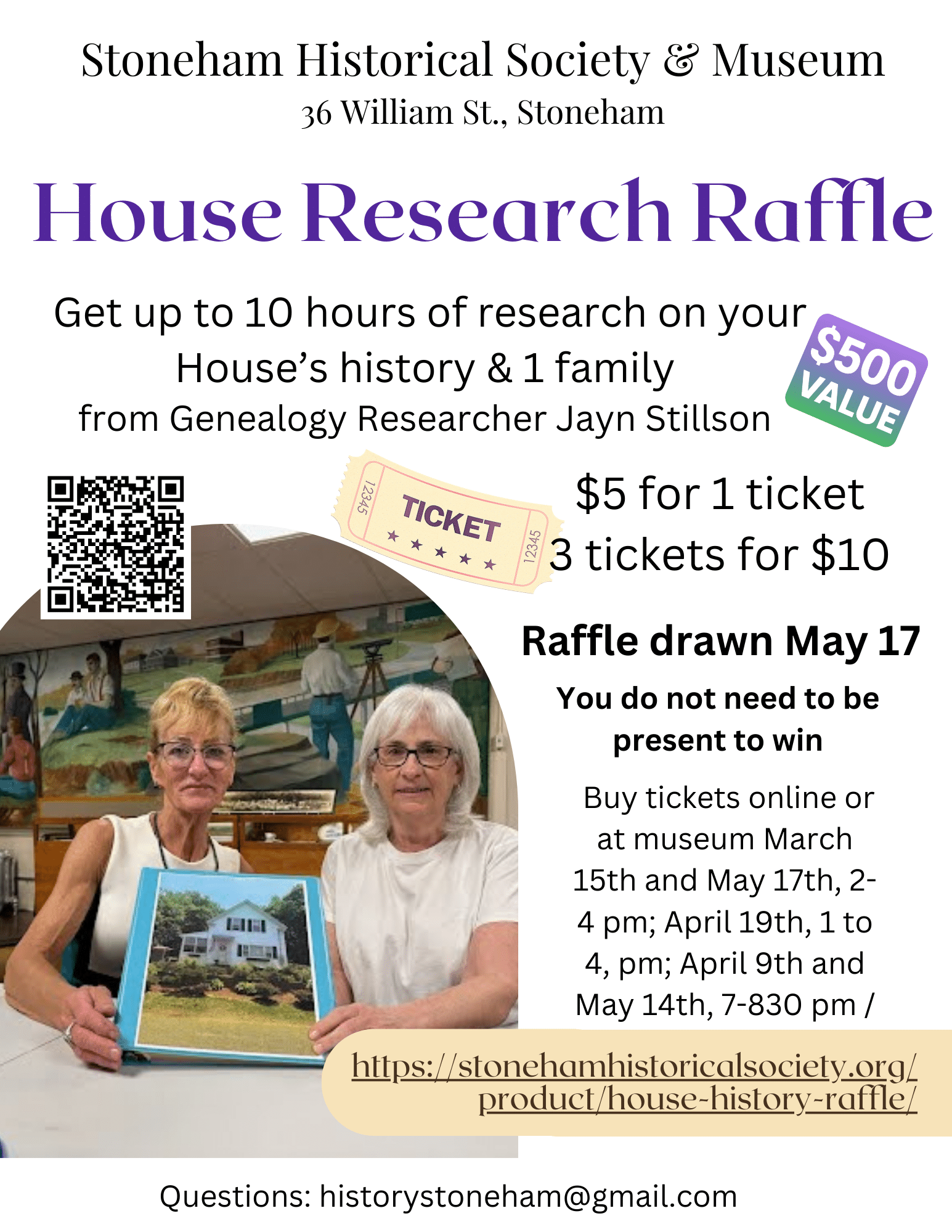 You can also download a printable PDF Research Request form and mail it to us with your $35 non-refundable check payable to Stoneham Historical Society & Museum, 36 William St., Stoneham, MA 02180. Note the first hour of research is free for members in good standing, with a 20% discount on additional hours.